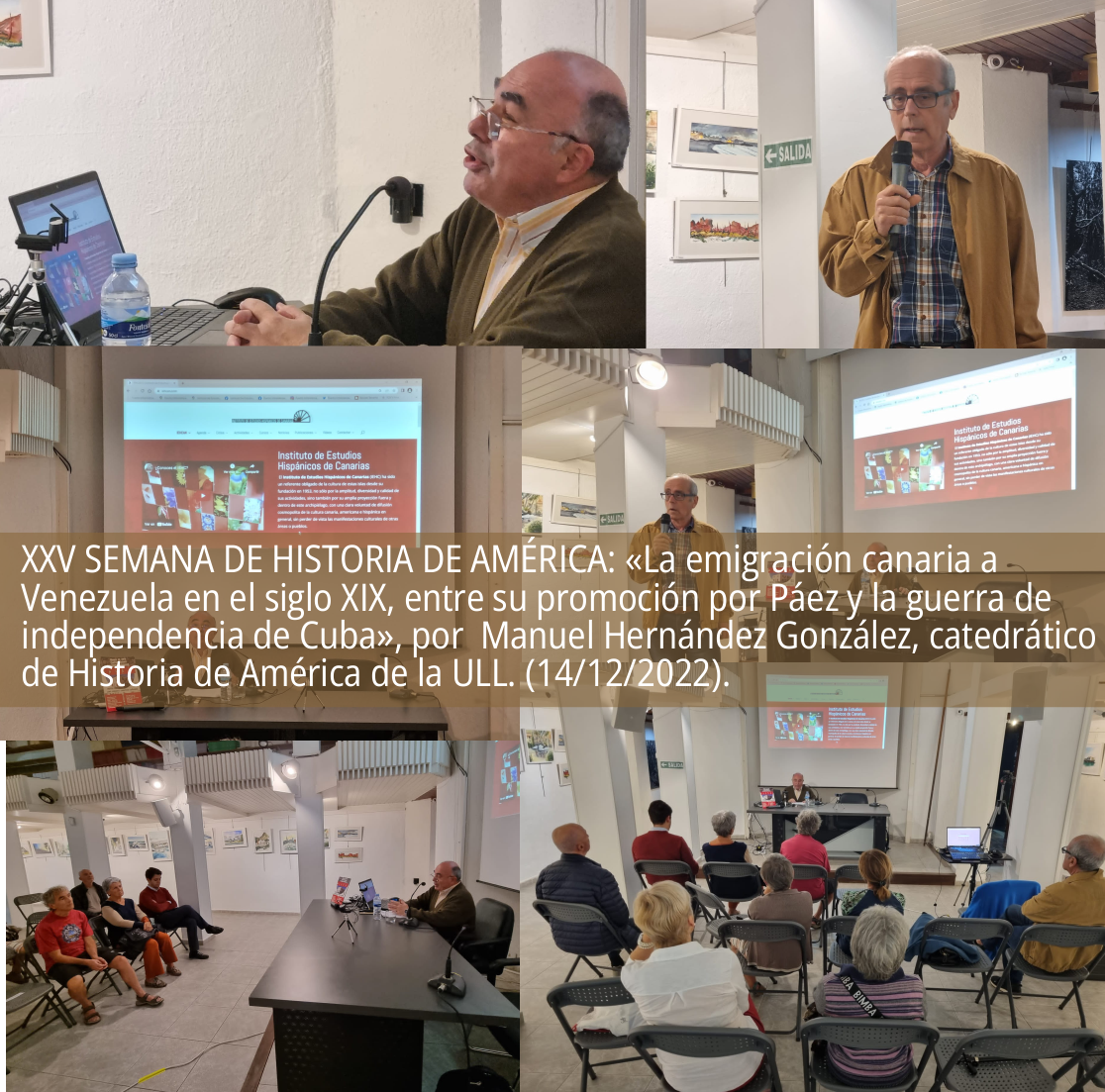 Del lunes 25 al jueves 28 de noviembre de 2019, tuvieron lugar las conferencias de la XXII Semana de Historia de América, coordinada, como en anteriores ediciones, por el catedrático de Historia de América de la ULL, Manuel Hernández González.